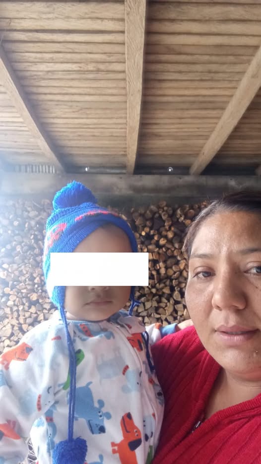 Katia Berenice Ramírez Tadeo es la mujer que se encuentra junto a su hijo de 2 años de edad quienes se quedaron atrapados en la comunidad de Apachitla municipio de Ilamatlan.