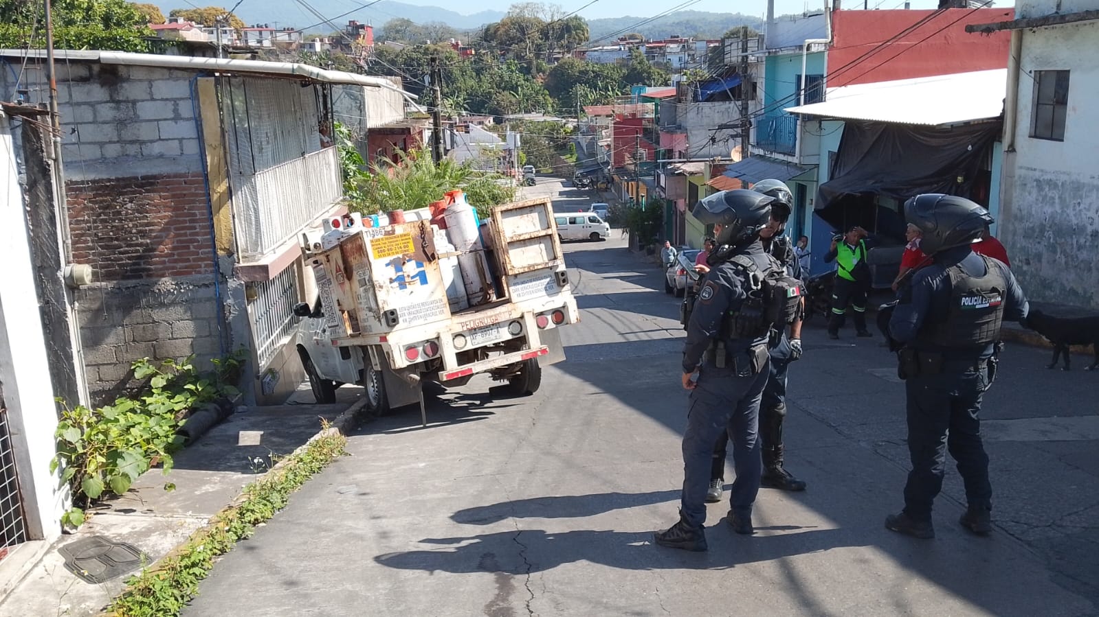 La camioneta transportaba cilindros de gas, por lo que se activaron protocolos preventivos para evitar riesgos mayores.