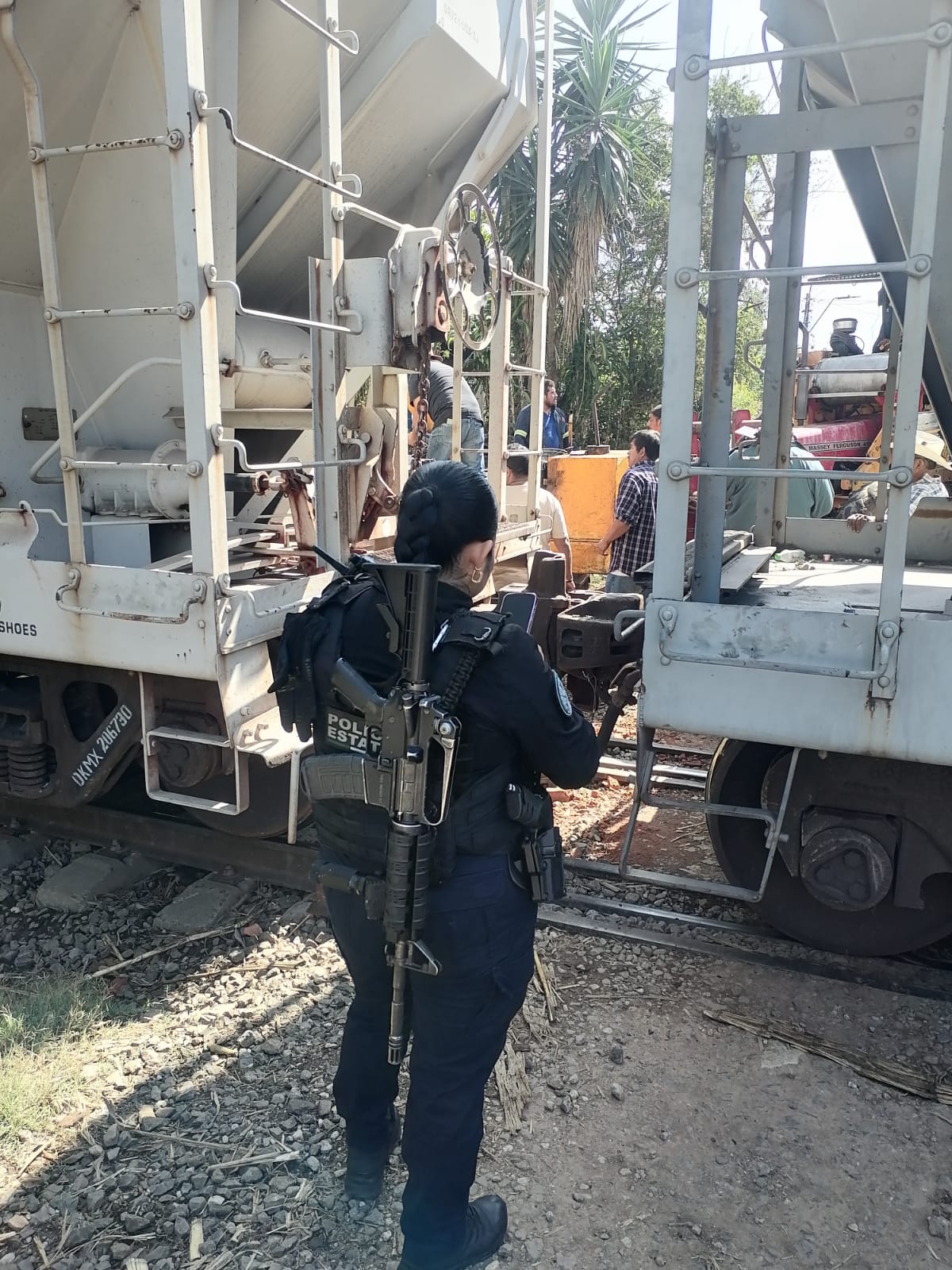 Personal de la empresa ferroviaria Ferrosur también arribó al lugar con el fin de inspeccionar el estado del tren involucrado y verificar posibles afectaciones en la operación ferroviaria derivadas del impacto.
